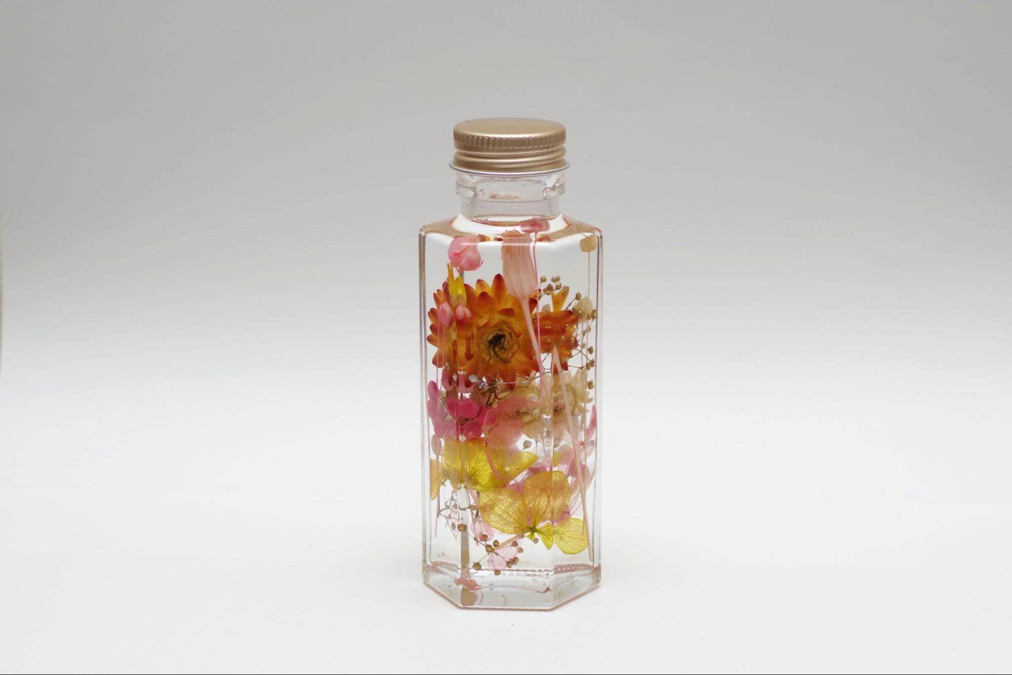 หนึ่งในของขวัญสุดพิเศษที่มีเอกลักษณ์เฉพาะตัว ด้วยการจัดเรียงดอกไม้ชนิดต่างๆ ตามที่ชอบลงในขวดแก้วให้สวยงาม โดยอาจจะมีการออกแบบตามสไตล์ของแต่ละคน จะเลือกใช้ดอกไม้จริงทั้งหมดหรือผสมกับดอกไม้อบแห้งก็ได้ ที่สำคัญคือในการจัดเรียงต้องใช้ความใจเย็น ค่อยๆ จัดเรียงลงไปทีละนิดทีละหน่อย ไม่ต้องรีบร้อน สร้างอารมณ์ความรู้สึกเหมือนกับการใส่ความรัก ความเอาใจใส่ลงไปด้วย ให้นึกเสมอว่าเพียงแค่กิ่งหรือดอกใบเล็กๆ ก็สามารถสื่อสารอารมณ์ความรู้สึกของผู้ให้ได้เป็นอย่างดี ฉะนั้นต้องตั้งใจและพิถีพิถันในการทำอย่างถึงที่สุด จากนั้นให้ใส่น้ำมันลงไปเพื่อช่วยรักษาสภาพดอกไม้ให้อยู่ได้ยาวนาน รับรองว่าการให้ของขวัญด้วยดอกไม้ในขวดแก้วนี้จะช่วยสร้างความรู้สึกพิเศษให้กับผู้รับได้ดีอย่างแน่นอน